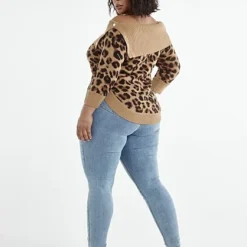 Fashion To Figure Amelia Leopard Print Split Collar Sweater