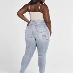 Fashion To Figure High Rise Light Wash Destructed Skinny Jeans – Short Inseam