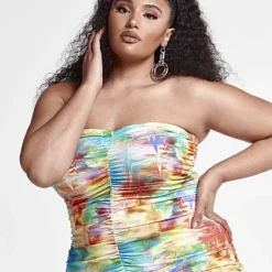 Fashion To Figure Serena Strapless Watercolor Print Dress With Ruching