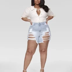 Fashion To Figure Bleached Look Destructed Denim Shorts