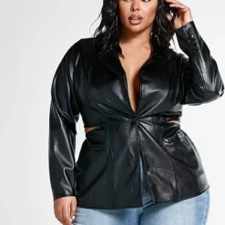 Fashion To Figure Liv Faux Leather Cutout Blazer