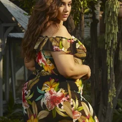 Fashion To Figure Tamara Palm Print Maxi Dress