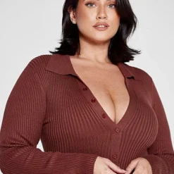 Fashion To Figure Mia Ribbed Knit Button Front Dress