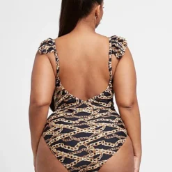 Fashion To Figure Melody Chain Print Ruffle One-Piece Swimsuit