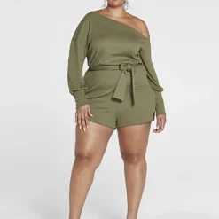 Fashion To Figure Penelope Ribbed Knit Off Shoulder Romper