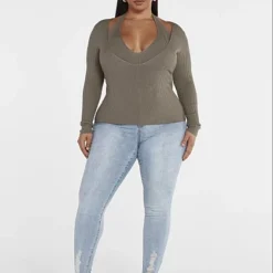 Fashion To Figure Angie Ribbed Knit Halter Cutout Top