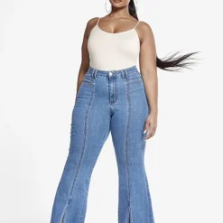 Fashion To Figure High Rise Flare Jeans With Front Slit – Short Inseam