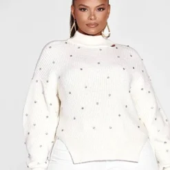 Fashion To Figure Carine Rhinestone Split Hem Sweater
