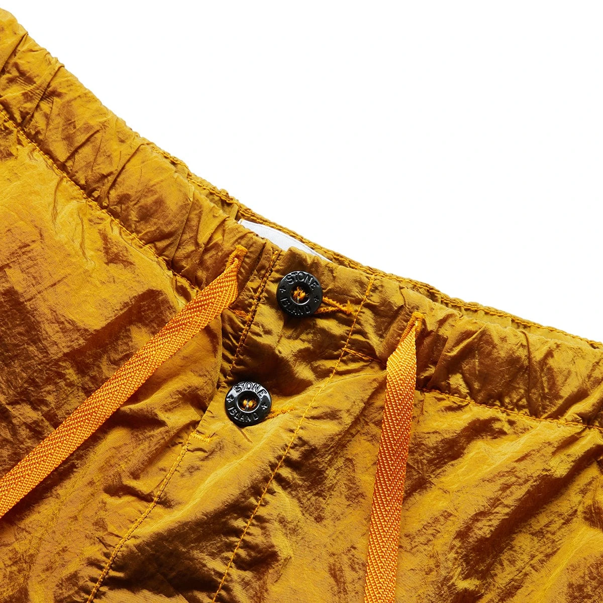 The Stone Island NYLON METAL BEACH SHORTS 1015B0643 V0032, are environmentally conscious bottoms crafted from the iconic Nylon Metal fabric with a sustainable twist. This piece showcases the evolution of the beloved material, incorporating ECONYL® regenerated yarns for a responsible and eco-friendly approach. The finished garment is stained using a complex double-dye procedure, which produces a striking two-tone effect on trims and overstitching, adding a touch of uniqueness to the design. Featuring the signature Stone Island badge on the left leg, these shorts are a statement piece with an environmentally responsible edge.