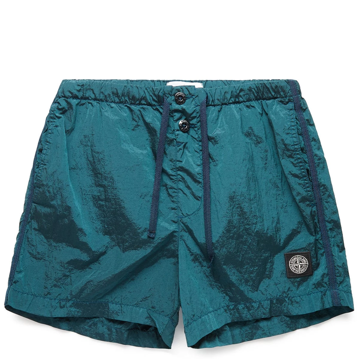 The Stone Island Nylon Metal Beach Shorts , are environmentally conscious bottoms crafted from the iconic Nylon Metal fabric with a sustainable twist. This piece showcases the evolution of the beloved material, incorporating ECONYL® regenerated yarns for a responsible and eco-friendly approach. The finished garment is stained using a complex double-dye procedure, which produces a striking two-tone effect on trims and overstitching, adding a touch of uniqueness to the design. Featuring the signature Stone Island badge on the left leg, these shorts are a statement piece with an environmentally responsible edge.